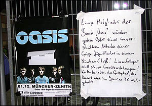 ![]() N-Oasis ... poster tells Munich fans gig is off |